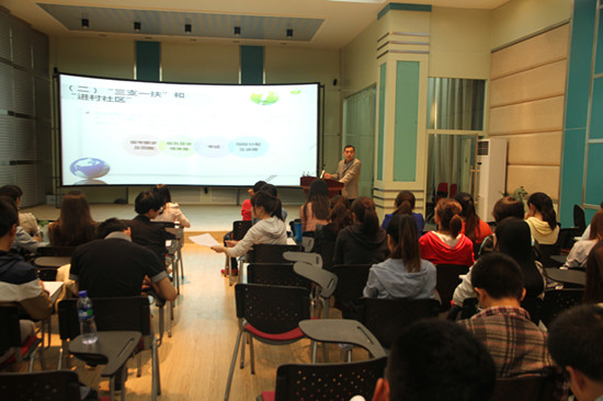 随后,他根据国家和甘肃省2012年大学生相关就业政策,就民生实事扶持高校毕业生就业工程项目和基层服务项目给同学们进行解读。民生实事方面,他重点就项目内容、报考条件、报名资格审查、考试内容及范围、考试时间、待遇及保障措施等详细做了说明;基层服务方面,他重点就大学生村官、“三支一扶”和“进村进社”、大学生志愿服务西部计划、国家农村义务教育阶段学校教师特设岗位等项目的报考对象和条件、报名时间、地点、考试内容做了说明。与永利官网毕业生相关的旅游人才、特岗教师等项目,贾书记还就考试形式、考试内容做了进一步阐述。