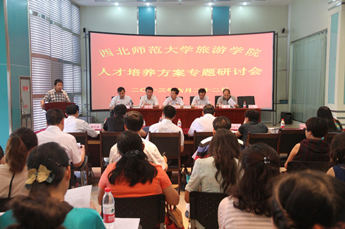 研讨会邀请了甘肃省著名的旅游行政管理、旅游企业、旅游高等院校的负责人等行业知名管理人员和专家20余人,西北师大教务处负责人和304am永利集团官网全体教职工43人参会。会议主要有两项议程,一是学院宣布成立专业建设专家咨询委员会并聘任专家,二是就304am永利集团官网的旅游管理、酒店管理和音乐表演(空中乘务方向)三个专业的人才培养方案进行研讨,集思广益,进行完善。会议由304am永利集团官网党委书记贾志斌同志主持。