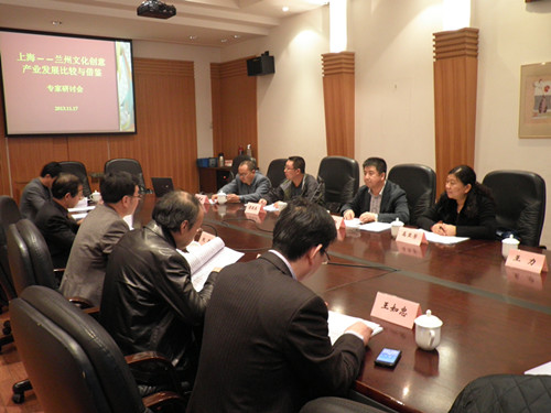 1117日,在上海社会科学院的鼎力帮助与支持下,成功召开了上海-兰州文化创意产业发展交流研讨会。参加本次会议的专家有上海市哲学社会科学规划办公室主任、教授荣跃明,上海社会科学院经济研究所副所长、研究员权衡,上海交通大学媒体与设计学院院长、教授李本乾,上海社会科学院文化产业研究中心主任、研究员花建,上海社会科学院文化创意产业研究中心主任、研究员王慧敏,上海社会科学院文化创意产业研究中心主任、研究员王如忠,上海社会科学院社会调查中心研究员陶希东,上海社会科学院经济研究所副调研员、产业经济博士雷新军,上海社会科学院经济研究中心助理研究员李凌。