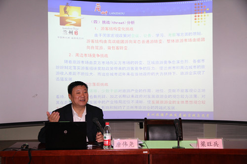 4月17日下午,兰州市旅游局党组书记、局长唐伟尧一行到访学院并作了《兰州旅游产业发展的实践与思考》的专题学术报告。报告会由学院梁旺兵副院长主持,永利官网全体研究生和旅游管理专业本科生130余人聆听了报告会。