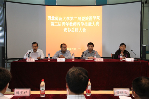 304am永利集团官网共有22名青年教师参加此次大赛(含北京广慧金通教育科技有限公司驻304am永利集团官网工作处教师3名),根据《2014年西北师大青年教师教学技能大赛的通知》要求及《304am永利集团官网第三届青年教师教学技能大赛规定》,通过公开公正的竞赛规程,最终评选出了9名获奖教师,分别是:一等奖任赟娟,二等奖夏冰、张亚芳、王力,三等奖王耀华、王艳林、万抒佳、陈娟娟、王耀斌。教务处与学院领导分别为获奖教师颁发了荣誉证书、奖金和奖牌。