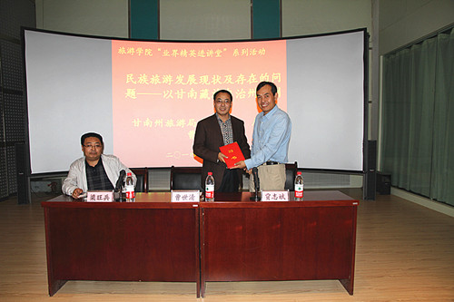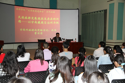 9月15日下午,受学院邀请,甘南藏族自治州旅游局党组书记、局长曹世清一行到访学院并作了《民族旅游发展现状及存在的问题》的专题学术报告。永利官网全体研究生、2014级“卓越班”和旅游管理专业本科生120余人聆听了报告会。学院党委书记贾志斌同志和学院副院长梁旺兵教授参加了报告会。报告会由梁旺兵副院长主持,
