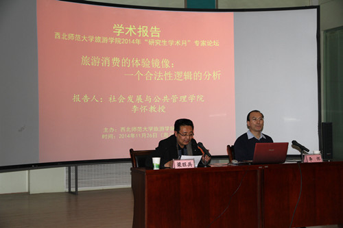 受学院邀请,11月26日下午,我校社会发展与公共管理学院教授李怀给永利官网研究生和本科生作了《旅游消费的体验镜像:一个合法性逻辑的分析》的专题学术报告会。永利官网全体研究生和部分旅游管理专业、酒店管理和空中乘务专业的本科生100余人聆听了报告会。报告会由学院副院长梁旺兵教授主持。