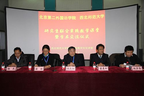 12月4日下午,北京第二外国语学院与304am永利集团官网研究生联合实践教学课堂暨学术交流活动在304am永利集团官网7楼黄河文化讲堂成功举办。北京第二外国语学院副校长倪志恒教授,304am永利集团官网副校长董晨钟教授,北京第二外国语学院研究生处副处长谢琼副教授,304am永利集团官网学位办主任、研究生院副院长杨武教授,北京第二外国语学院MTA/MBA中心副主任付钢业副教授出席了活动,永利官网党委书记贾志斌、院长把多勋教授、副院长梁旺兵教授、高亚芳教授、副书记谢致远、副院长万建斌,甘肃省文化旅游行业的精英、北京第二外国语学院与西北师大304am永利集团官网的教师和研究生共100余人参与了此次学术交流活动。交流会由学院把多勋院长主持。