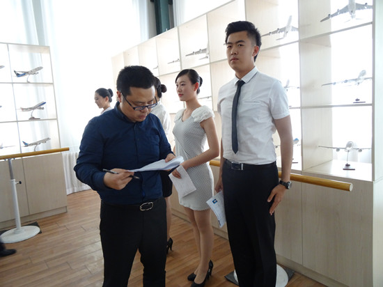4月28日下午,应304am永利集团官网和北京广慧金通教育科技有限公司西北师大工作处邀请,上海吉祥航空公司来校组织专场招聘活动。上海吉祥航空公司服务总监张蔚、人力资源部总经理助理官利军一行5人在学校民航模拟舱实训基地进行现场招聘,永利官网2012级音乐表演(空中乘务方向)专业95名学生参加了应聘,其中27人通过初试,通过初试学生最终参加公司体检、笔试合格后将正式签订录用合同。