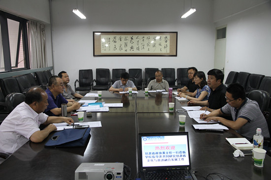 6月30日下午,甘肃省政协港澳台侨和外事委员会主任黄周会、副主任于树青、省台联副会长杜擂升一行3人到院就丝绸之路经济带甘肃段文化旅游融合发展调研报告撰写及提交省政协建议案等事宜进行了座谈。学院院长把多勋、副院长梁旺兵、文化产业系主任王力、旅游管理系主任欧阳正宇、航空服务与管理系主任柴亚林、实验中心主任王耀斌等参加了座谈会。