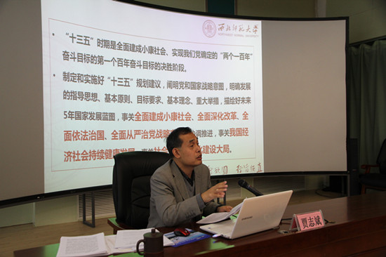 学院党委书记贾志斌认为,学校第七次党代会是在学习贯彻落实党的十八大和十八届三中、四中、五中全会精神,在“十二五”收官之际,全力谋划“十三五”规划的背景下召开的一次大会,党代会回顾学校第六次党代会以来学校取得的办学成就,客观分析了办学中存的不足和面临的挑战,明确了学校办学定位和目标任务、凝练了办学特色和办学思路、指明了学科建设和人才培养的方向,紧紧抓住学生成长这个中心、教师专业发展这个根本、突出教学这个重心,为学校未来发展制定和描绘了规划图、路线图、施工图。学院要结合落实国务院发布的《统筹推进世界一流大学和一流学科建设总体方案》,主动适应学校新常态,抢抓机遇,埋头苦干,大力推进学院各项工作,将十八届五中全会和学校党代会报告的精神融入到学院“十三五”发展规划的制订中,促进学院在新的历史起点上内涵发展、质量发展、特色发展和创新发展,走出新常态下的特色之路。