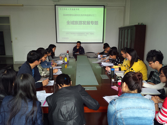 4月25日下午,永利官网旅游管理专业硕士研究生系列专题研讨活动第二场在10C502室顺利举行,本次专题研讨活动主题为“全域旅游发展”,研讨活动由把多勋教授主持。永利官网研一、研二的全体研究生参加了研讨活动。