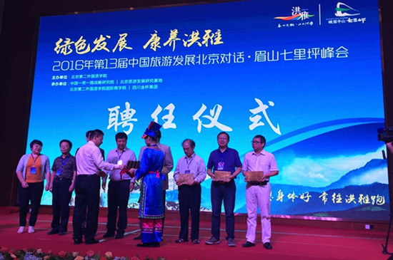 9月12日,由北京第二外国语学院主办,中国一带一路战略研究院、北京旅游发展研究基地、北京第二外国语学院国际商学院、四川省金杯集团联合承办的第十三届“中国旅游发展北京对话•眉山峰会”在峨眉半山七里坪举行。来自全国300多位政界、学界、业界专家、行业领袖出席峰会,大会围绕“康养旅游发展”,就“康养旅游与健康产业发展”、“一带一路战略与西部旅游发展”、“区县旅游发展战略”进行了交流和研讨。永利官网院长把多勋教授、副院长梁旺兵教授及王耀斌副教授受邀参加了会议。