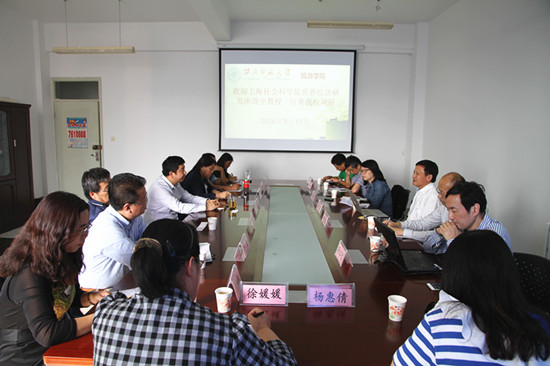 周宇教授首先介绍了上海社科院及参会专家、学者的情况,并针对调研主题及调研重点进行说明。随后,各专家学者就座谈主题依次发言。白永平教授就甘肃省价值和原材料流失问题进行探讨,张永丽教授提出甘肃省经济发展的几个重点,孙健教授就金融开放中的政府行为问题进行讨论,梁旺兵教授结合民族地区旅游发展介绍了甘肃省金融开放的阻碍和困境,刘敏教授提出“一带一路”战略推进中甘肃省应该反思的几个问题,王秋红教授介绍了甘肃省在人民币国际化问题上的成绩和阻碍,徐媛媛教授从统计学的角度介绍了甘肃省金融行业的相关情况和问题。最后,双方就前面所提到的问题进行进一步的沟通交流。把多勋教授就甘肃省传统经济发展的模式以及甘肃省经济发展的新方向进行补充说明,并就双方学术交流、教师培训等事宜进行了协商。