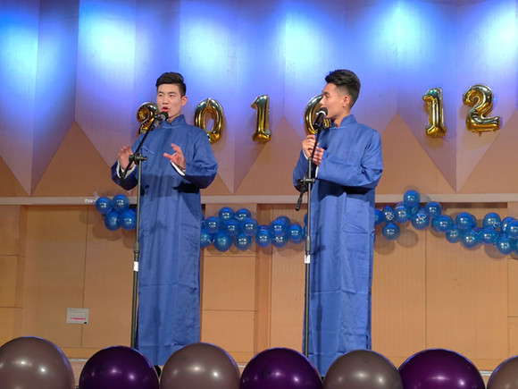 304am永利集团官网文艺骨干队成员单红强、郭敏达相声《满腹经纶》