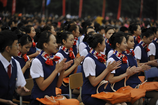 在这里你会看到一群身着蓝色制服、步态潇洒优雅的少男少女,他们是航空服务与管理专业的学生,我们指引他们插上飞向蓝天的翅膀,让他们成为蓝天白云间的骄子。