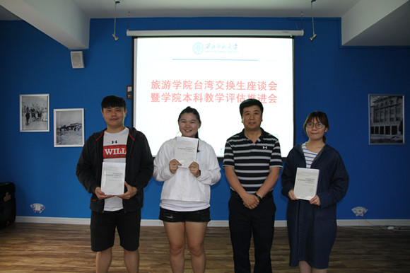 王耀斌副院长介绍了台湾三位交流生的学习安排情况。三位台湾同学表示,这次学习真正体会到了理论与实践的结合、祖国大陆西北人的好客、学院对他们的关爱与照顾等等,回台湾后会把所见所闻告诉学校的学生,希望他们也能到304am永利集团官网交流学习。