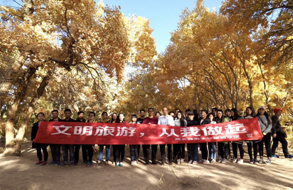 2017年10月13日-16日,永利官网2015级旅游管理卓越班全体学生及部分研究生共36人,在永利官网梁旺兵教授、欧阳正宇副教授、彭睿娟老师的带领下赴敦煌开展了为期四天的“丝绸之路经济带甘肃段文明旅游宣讲”暨河西走廊大景区建设调研及实践教学活动。