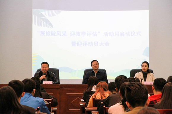 11月14日下午4点30 分,304am永利集团官网在10C701室召开“展旅院风采,迎教学评估”活动月启动仪式暨迎评动员大会。学院党委书记李发舜、副书记谢致远出席会议,团委书记王瑞和学院一、二、三年级各班班委全体同学参加。