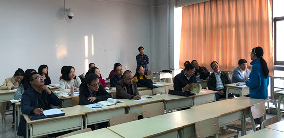 首场参赛的青年教师是主讲空乘选修课《旅游英语》的刘钊老师,她较为宏观的讲述了会展英语的相关内容,在技能训练方面,注重说、读,营造了较好的语言氛围。第二场参赛的青年教师是主讲旅游管理(专升本)必修课《综合英语》的陈锴娴老师,她从问题讨论、名人名言解析、文章宏观阅读、英语听写四个方面训练学生的听说读写能力,课堂气氛活跃,学生互动积极。讲课结束后所有听课教师对所听课程从教学设计、组织管理、教学方法等层面进行了点评与讨论。书记李发舜肯定了学院此次活动的组织模式,表扬了老师们积极的评课态度与参赛精神。院长把多勋教授强调青年教师在成长和发展中应处理好态度和能力、学习和经验积累、教学设计和课堂管理等关系,期待青年教师珍惜这难得的学习机会,在教学上多下功夫,尽快成长为学生喜爱的高校教师。