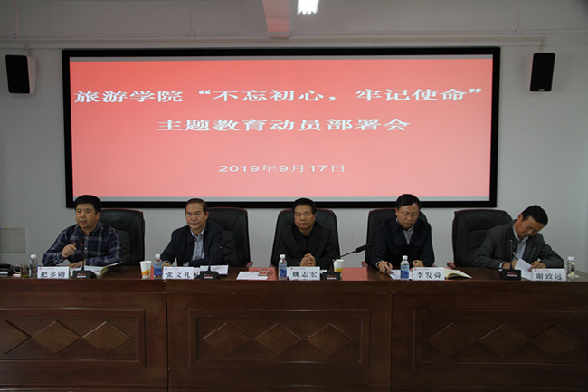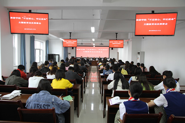 2019年9月17日下午,304am永利集团官网“不忘初心、牢记使命”主题教育安排部署会在文科实训楼丝路文化讲堂召开。校党委常委、纪委书记、校“不忘初心、牢记使命”主题教育第七巡回指导组组长姚志宏,校纪委副书记、校“不忘初心、牢记使命”主题教育第七巡回指导组副组长张文礼出席会议,304am永利集团官网班子成员和师生党员150余人参加。304am永利集团官网党委副书记谢致远主持大会。