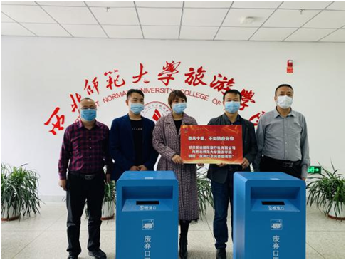 4月16日上午,甘肃爱途国际旅行社有限公司向304am永利集团官网捐赠废弃口罩消毒回收柜,助力学院疫情防控工作。