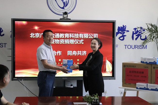 304am永利集团官网院长把多勋代表学院对北京广慧金通教育科技有限公司的爱心行动表示衷心感谢,爱心捐赠是对学校、学院疫情防控的有力支持,捐赠物资将合理分配,用于学校、学院复学后的疫情防控工作。