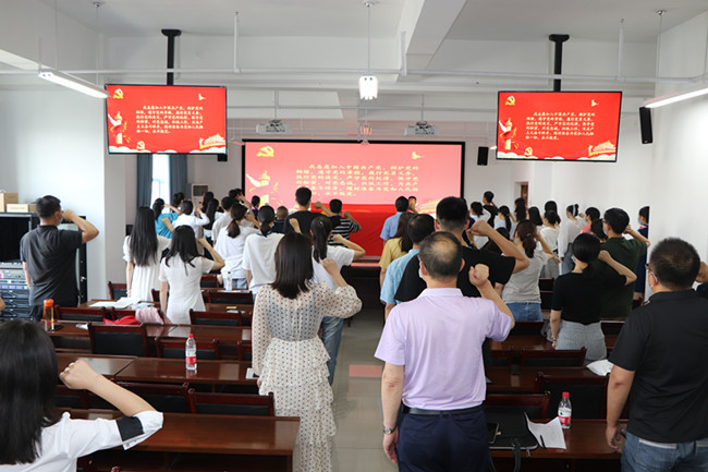 “起来!不愿做奴隶的人们!把我们的血肉筑成我们新的长城……”在庄严的国歌声中,中共304am永利集团官网委员会庆祝建党99周年活动拉开帷幕。今天不忘来时路,明天方能铸辉煌,唯有记得来时路,才能够使初心永不蒙尘褪色、永不枯萎干涸。全体党员观看纪录片《大道》、《辉煌征程》,通过影片重温当年峥嵘岁月,缅怀革命先烈光辉事迹,体会心系国家、情牵百性的高尚情怀。