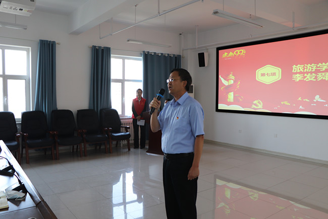 学院党委书记李发舜参加活动时说,回顾我们伟大的中国共产党走过的99年光辉历程,这是一部波澜壮阔的发展史,更是一部砥砺前行的奋斗史。我们党紧紧依靠人民,跨过一道又一道沟坎,取得一个又一个胜利,为中华民族复兴做出了伟大历史贡献。在这场疫情防控阻击战中,学院全体党员干部冲锋在前、迎难而上、勇挑重担,在抗“疫”一线发挥主力军、排头兵作用,牢牢守护广大师生生命安全;师生党员积极响应党组织号召,倾情相助,捐款10420元,为疫情防控奉献力量;学院青年学子志愿加入战“疫”志愿者队伍,参与家乡所在地区防疫工作,为打赢防疫攻坚战贡献青春力量。抗疫不停教不停学,学院广大教师充分利用假期精心准备线上教学方案,学习线上授课技巧,平稳有序开展线上教学工作。把多勋院长主持的一项甘肃省哲学社会科学重大招标项目通过评审。由党委委员、党支部书记、党员骨干教师带队开展乡村旅游示范村第三方评估工作、长征国家文化公园甘肃规划工作等一系列社会服务工作,得到充分肯定;教职工踊跃捐款捐物,助力消费扶贫,领导班子成员赴扶贫帮扶村,走村入户开展帮扶工作,为脱贫攻坚贡献力量。凡此过往,皆为序章。疫情防控、返校复学既是一次坚定初心使命的磨砺,更是一场锤炼党性修养的洗礼。广大师生党员在危难时刻挺身而出、全力以赴、恪尽职守,充分发挥了党组织的战斗堡垒作用和党员的先锋模范作用。希望全体党员不忘初心,牢记使命,只争朝夕,不负韶华,为学校“七高一体系”高水平大学建设做出积极贡献。学院庆祝中国共产党成立99周年活动在雄壮的《国际歌》歌声中圆满落下帷幕。