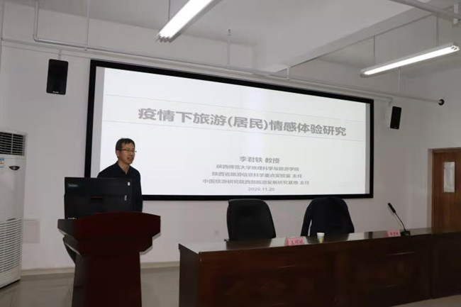 2020年11月20日下午,应学院邀请,陕西师范大学博士生导师李君轶教授为永利官网师生作了题为“疫情下游客/居民情感体验研究”的专题报告,报告会由副院长王耀斌教授主持。