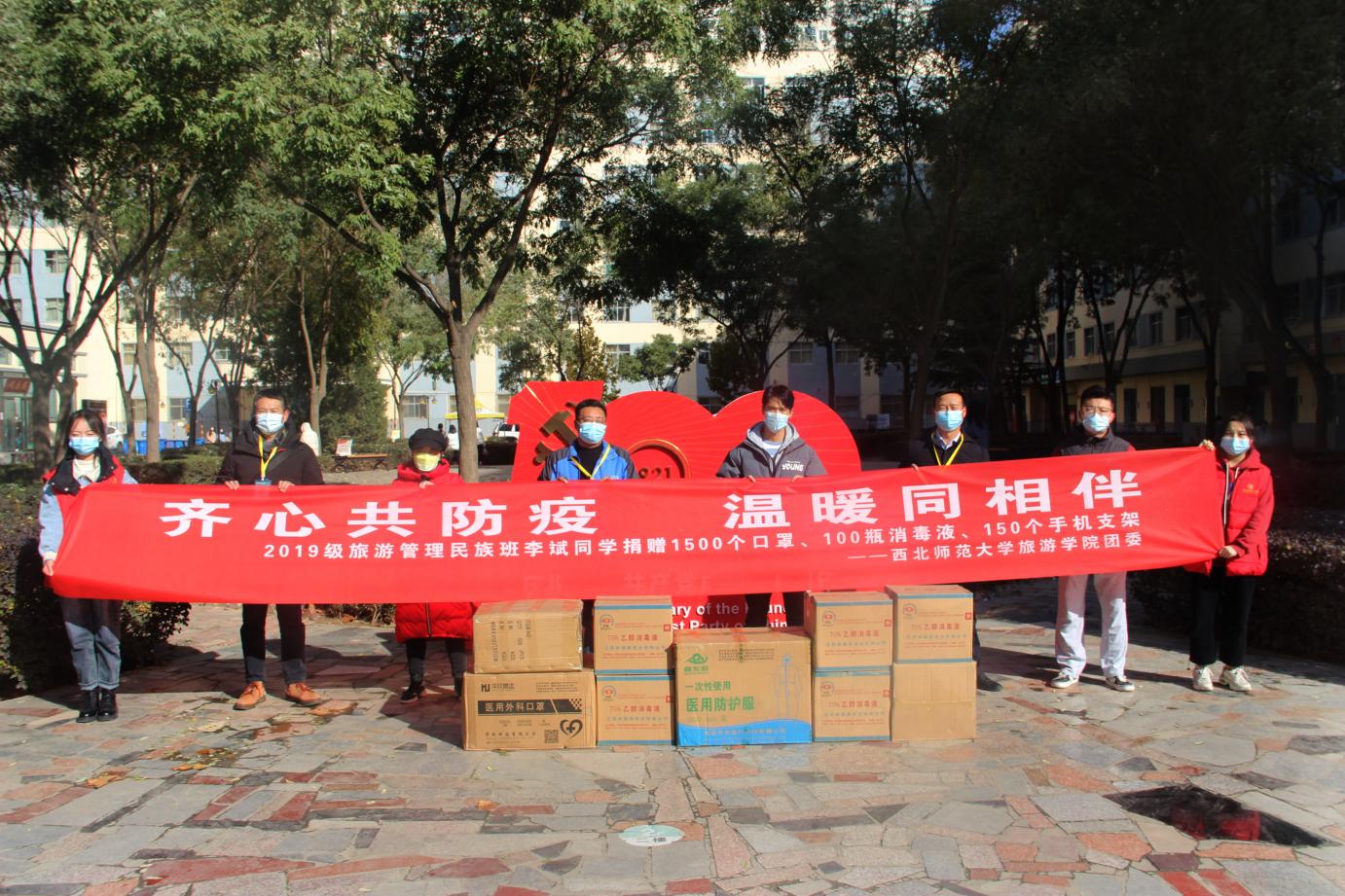 同心抗“疫”,众志成城。疫情防控是一场没有硝烟的战斗,战“疫”的每分每秒都始终牵动着参与其中的每一位同学们的心。在抗击新冠肺炎疫情的关键时期,永利官网2019级旅游管理民族班学生李斌伸出援助之手无偿捐赠防疫物资1500个口罩、100瓶消毒液、150个手机支架。以实际行动助力学院抗击疫情,贡献青春正能量,也为学院疫情防控提供了有力的物资保障。