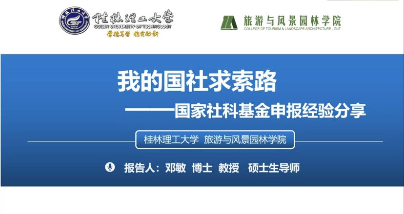 2021年12月1日晚上,应学院邀请,桂林理工大学旅游与风景园林学院邓敏教授为永利官网师生作了题为“我的国社求索路—国家社科基金申报经验分享”的专题报告,报告会由副院长柴亚林老师主持。