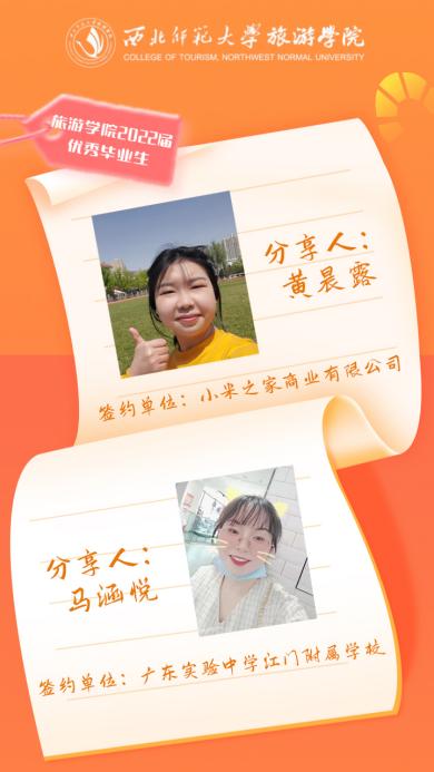 马世兰讲述了自己从春招到秋招的求职心路历程,并从招聘信息获取、简历制作和面试技巧等方面,分享了自身的求职经历。马涵悦讲述了自己在投递350份简历,参与多次面试后,最终顺利签约广东实验中学江门附属学校的求职经历。并向同学们分享了自己在求职意向确定、面试岗位选择、职业技能发展等方面的经验。