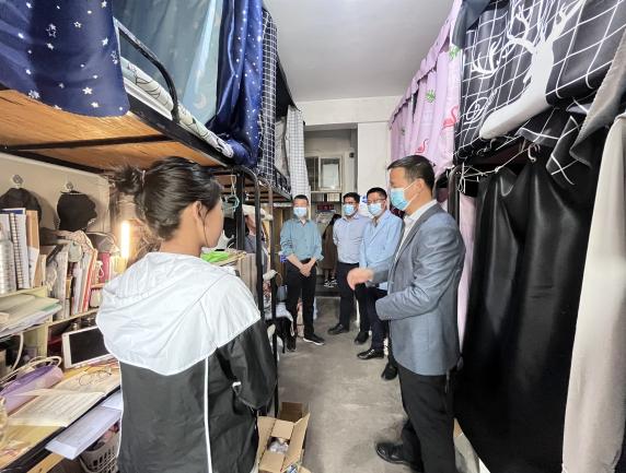 2022年5月7日,304am永利集团官网党委书记谢致远、副书记戴小武以及全体辅导员深入宿舍走访慰问2022届毕业生。