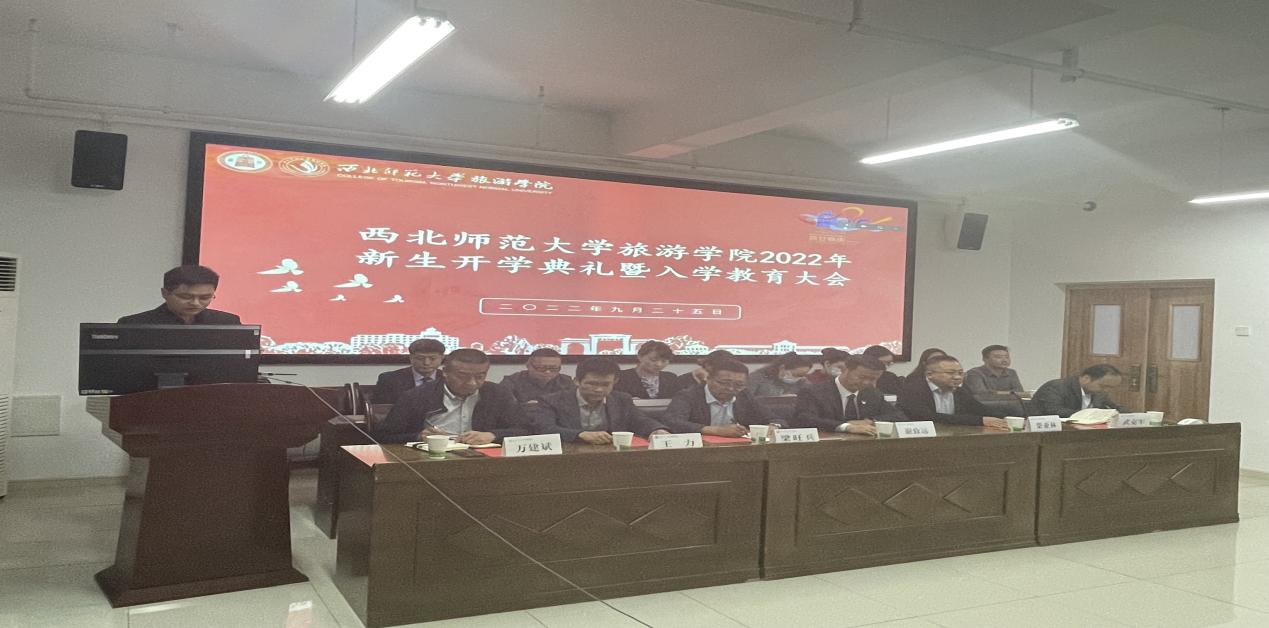 院长梁旺兵教授对2022级新生的到来表示热烈的欢迎并致迎新辞。梁院长对学院发展历程、学科建设、专业发展等基本情况进行简要介绍,并对未来文旅专业发展前景与趋势做全面解读。他提出文化旅游业是人民对美好生活的向往,是“非物质”生活需求,是幸福产业,选择旅游专业就是选择了生活,同时鼓励同学们立足专业学习、提升专业认知,脚踏实地、明确目标、努力提升个人综合素质,使自己成为具备远大理想、健康人格、创业精神等素养的创新性人才。