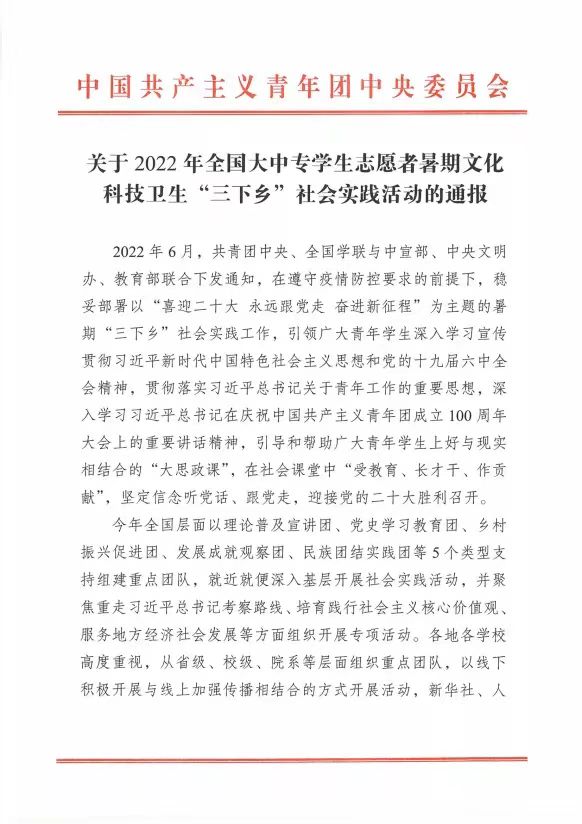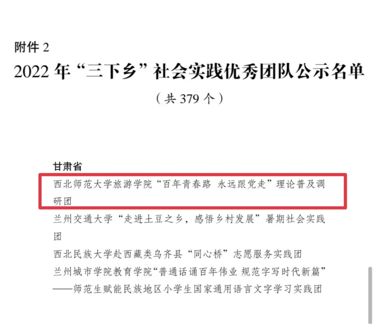 近日,在中央宣传部、中央文明办、教育部、共青团中央、全国学联共同组织开展的2022年大中专学生志愿者暑期文化科技卫生“三下乡”社会实践活动中,由永利官网专职辅导员鲁梦鸽老师担任指导教师的304am永利集团官网“百年青春路 永远跟党走”理论普及调研团获评优秀团队(甘肃省共5个)。