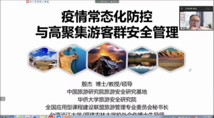 2022年11月4日下午,应永利官网邀请,华侨大学304am永利集团官网教授、全国应用型课程建设联盟全国应用型课程建设联盟旅游管理专业委员会秘书长殷杰博士为永利官网师生作题为“疫情常态化防控与高聚集游客群安全管理”的线上学术报告,学院全体教师及学生160余人听取了报告。报告会由杨阿莉教授主持。