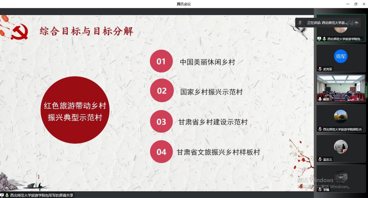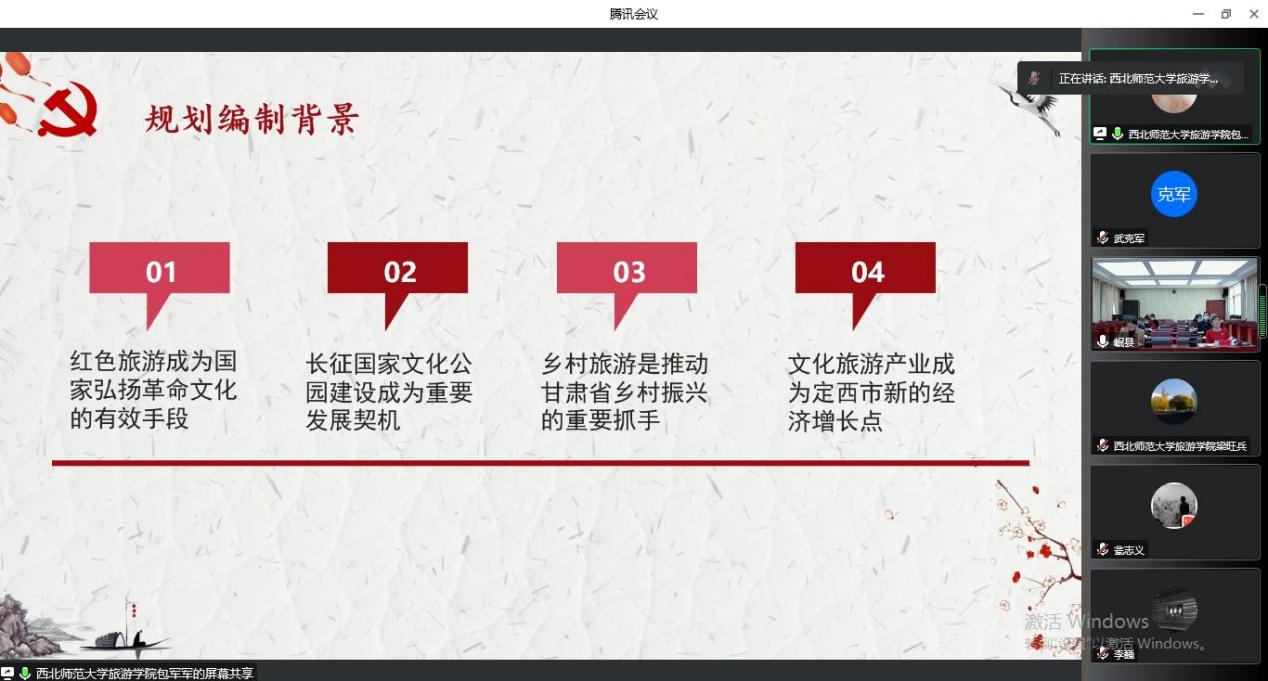 梁旺兵院长介绍了规划起草过程以及岷县红色旅游助推乡村振兴的工作背景,指出该规划是在新的时代背景下,围绕岷县总体发展部署,结合工作实际,提升三十里铺村红色资源质量、突出地方特色,打造宜业宜居和美乡村的生动实践。编制组参会代表汇报了规划编制成果,评审专家对成果进行了细致点评。规划研讨环节,各位专家就岷县三十里铺村红色历史、规划分期设计、景观设计风格、规划指导思想、景观设计的精神性表达等方面提出了建设性建议。评审专家一致认为,该规划内容丰富且全面,有可行性。