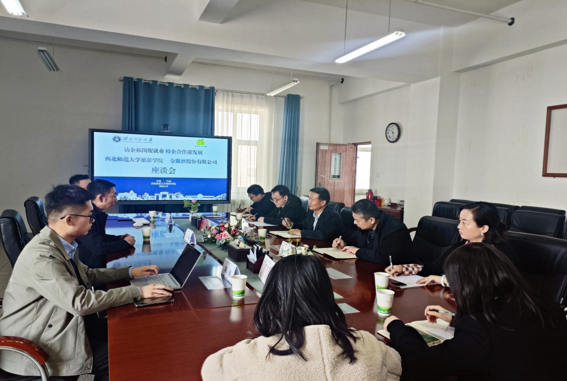 金徽酒股份有限公司人力资源部经理王斌介绍了公司的发展现状与未来前景,以及2023届春季招聘的岗位设置、员工职业发展和福利待遇等情况,并就毕业生班主任提出的相关问题进行详细解答。