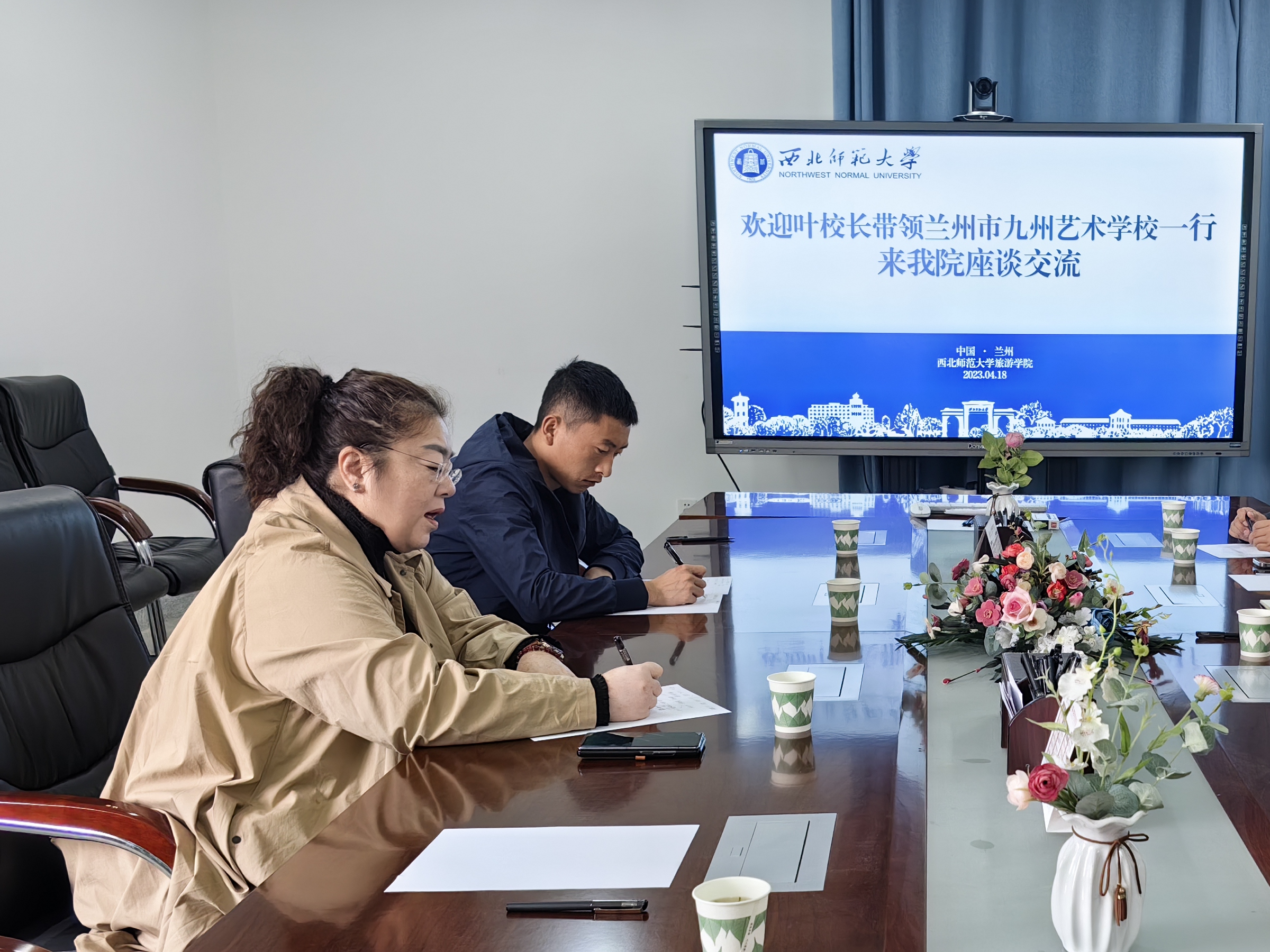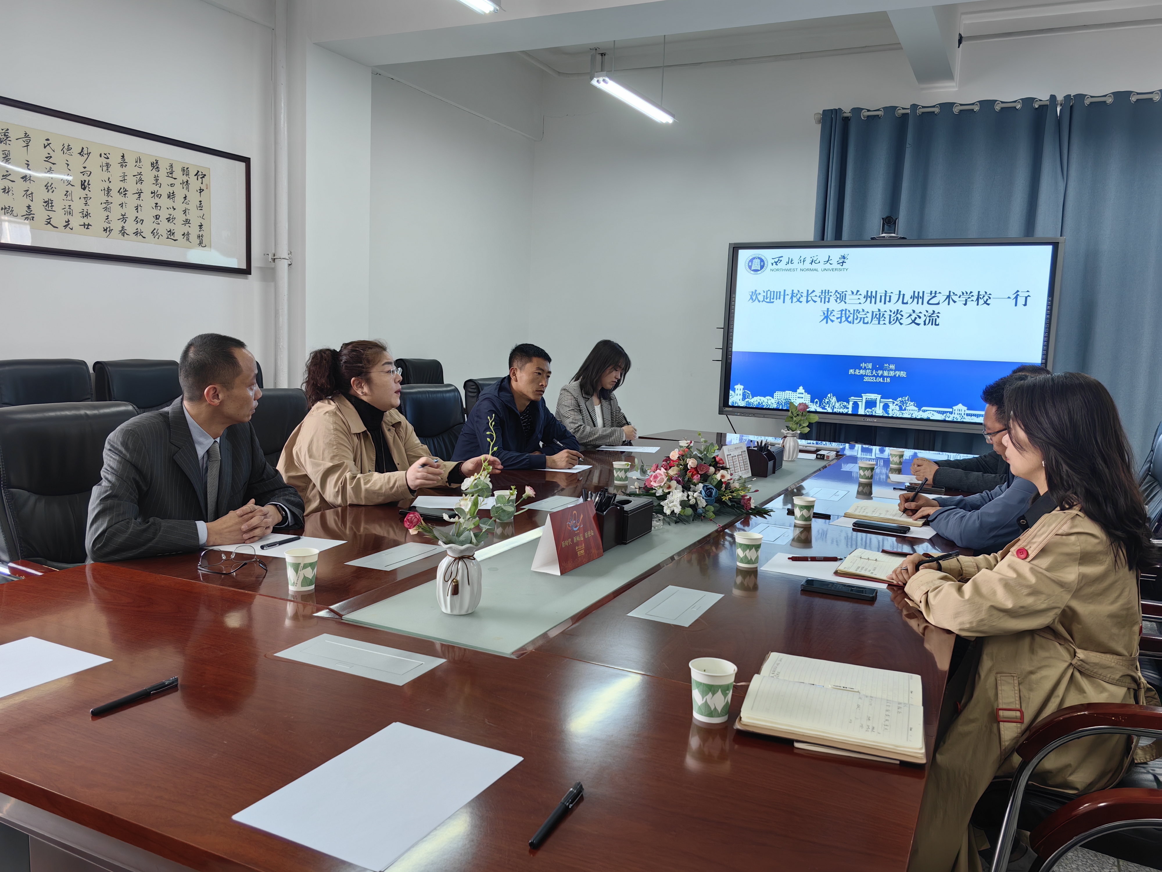 为认真学习贯彻习近平总书记关于做好高校毕业生就业工作的重要指示精神,以服务经济社会发展为导向,始终把就业工作摆在突出位置,持续推进产教融合,着力建好合作平台,汇聚促就业工作合力,努力推动毕业生更加充分更高质量就业为营造以实习促就业,全面推进学生就业工作顺利开展,4月18日,兰州市九州艺术学校叶赫校长一行4人,与304am永利集团官网院长梁旺兵、副院长柴亚林、北京广慧金通教育集团陕甘宁青区域总经理苗雪、北京广慧金通教育集团驻304am永利集团官网工作处主任席聪共同举行座谈。