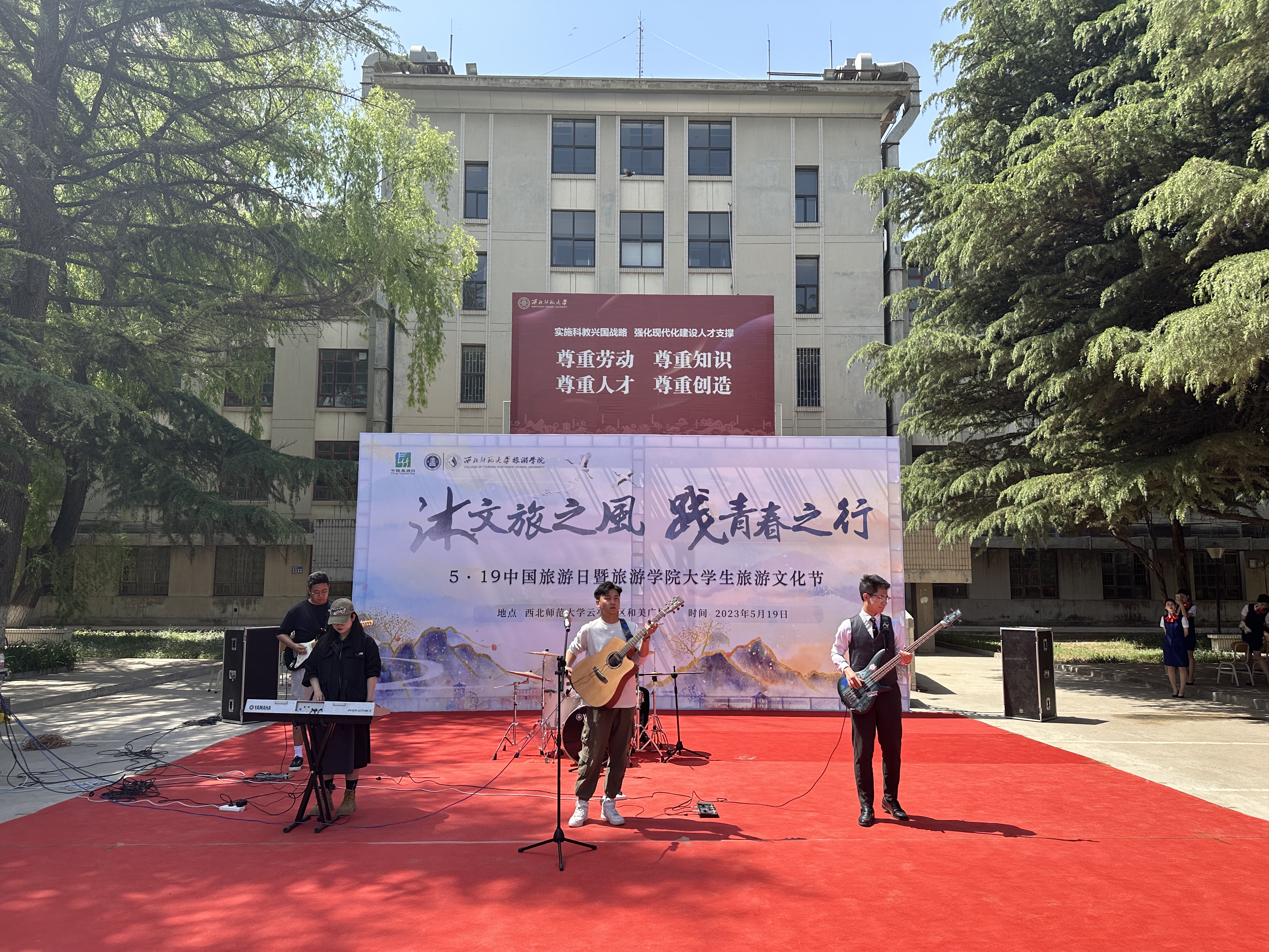 开幕式上,雷龙强同学进行《大学生文明旅游倡议》,304am永利集团官网各专业同学进行民航礼仪操、客舱安全演示表演以及兰州黄河风情线水车博览园、兰州白云观、中山桥等沿线8大景点讲解,集中展示旅游专业学生实践能力和综合素质。最后,由304am永利集团官网吉他社深安乐队带来青春洋溢的歌曲《兰州兰州》《New Boy》,赢得现场观众阵阵掌声和喝彩声。