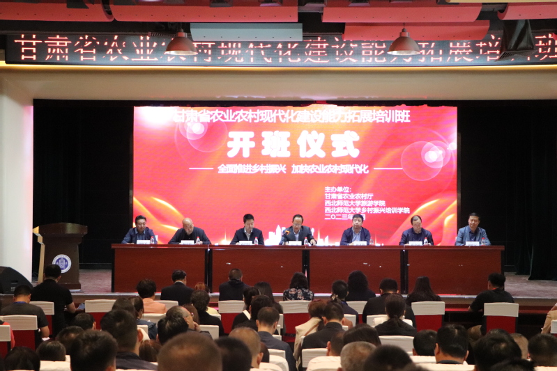2023年6月3日上午304am永利集团官网成功举办“甘肃省农业农村现代化建设能力拓展培训班”开班仪式,此次培训由甘肃省农业农村厅本着服务国家乡村振兴战略的宗旨,以培养高素质基层组织引路人为目标,委托304am永利集团官网乡村振兴培训学院及304am永利集团官网共同举办。本次开班仪式有甘肃省农业农村厅人事处处长孙培坚,甘肃省农业广播电视学校副校长杨安民,甘肃省农民培训管理办公室副主任张金福,304am永利集团官网党委常委、纪委书记、监察专员马庆,304am永利集团官网原院长、甘肃省旅游发展研究院执行院长、博士生导师把多勋,304am永利集团官网院长梁旺兵,304am永利集团官网党委书记谢致远等领导出席,参与本次培训各地市代表学员共计两百余人。