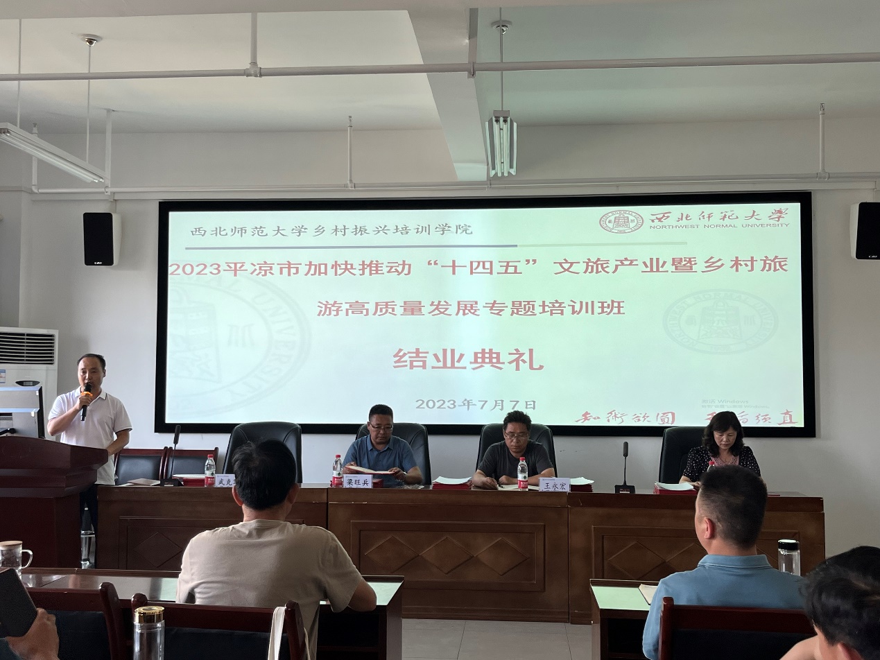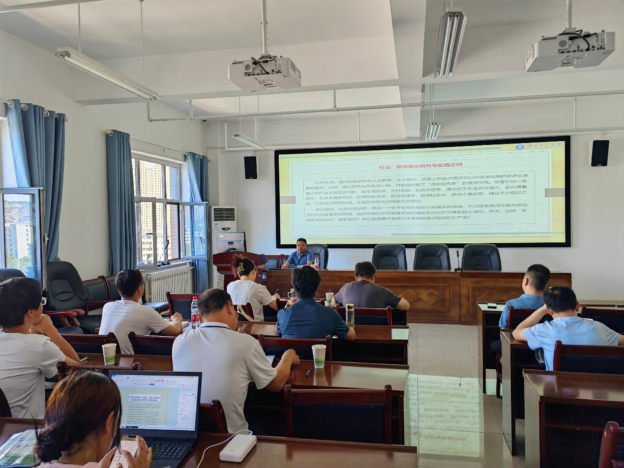2023年7月7日下午,平凉市加快推动“十四五”文旅产业暨乡村旅游高质量发展专题培训班迎来了此次培训的最后一节课,由304am永利集团官网院长梁旺兵为本次培训的学员带来了“文旅深度融合背景下乡村旅游高质量发展”专题讲座。