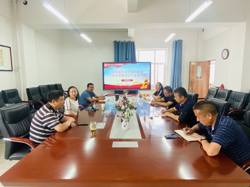 2023年8月22日上海复旦大学旅游学系沈涵教授在304am永利集团官网云衢楼1101会议室开展学术交流、专业建设、科研合作等方面的交流和指导工作。院长梁旺兵教授、甘肃省旅游发展研究院执行院长把多勋教授以及学院主要分管领导和教师代表参与此次交流和指导工作。