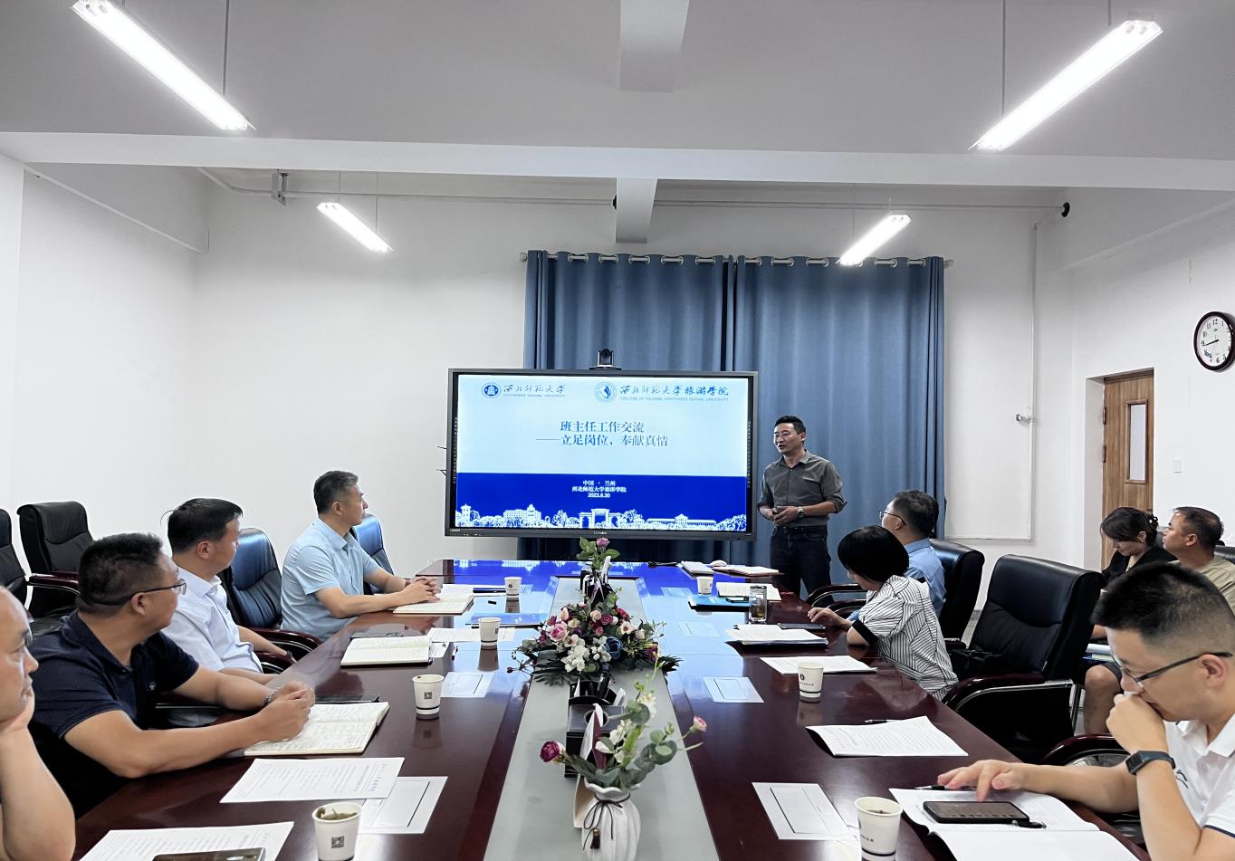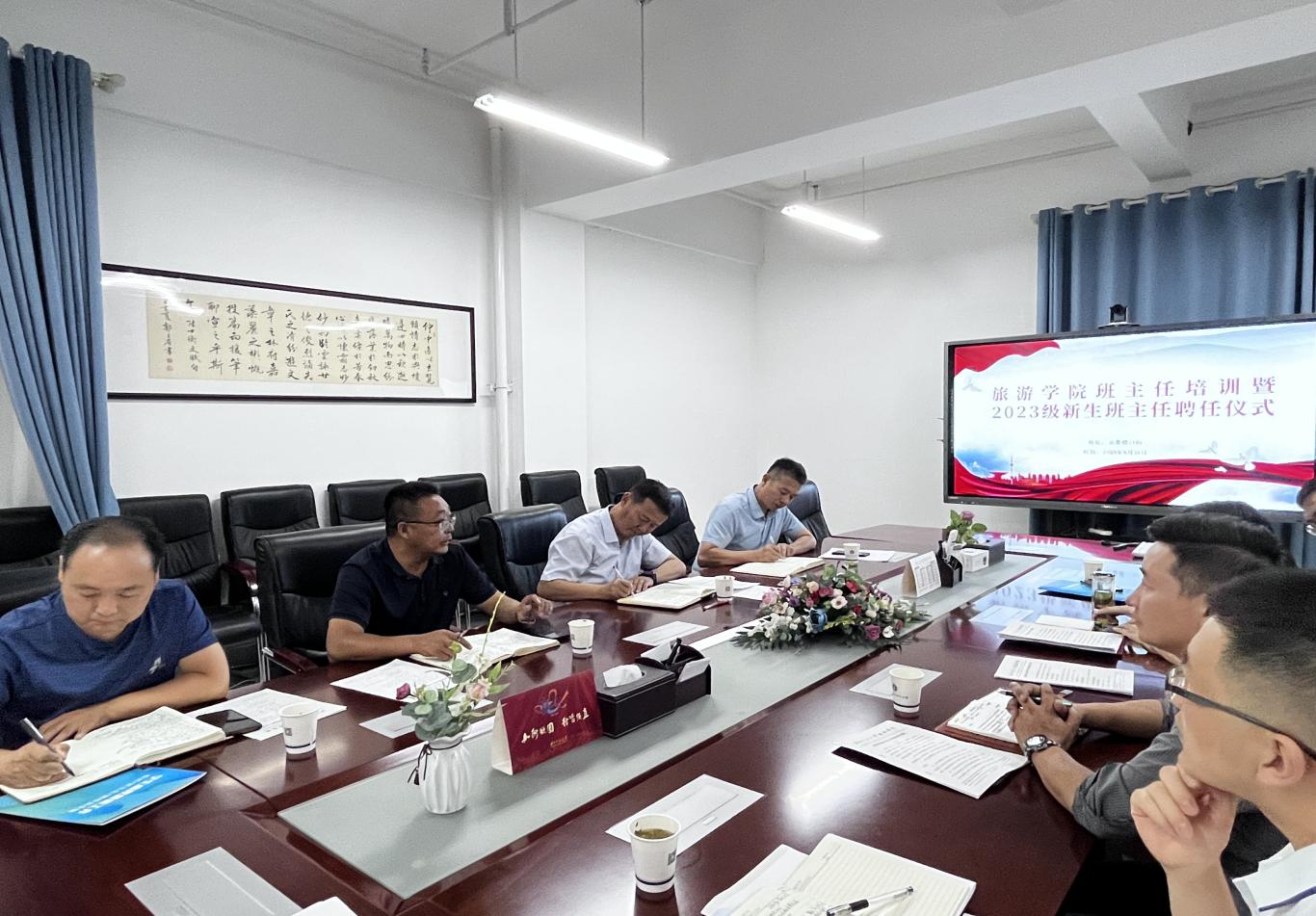 8月31日晚,304am永利集团官网班主任培训暨2023级新生班主任聘任仪式在云衢楼1101会议室举行。学院党委书记谢致远、院长梁旺兵出席并讲话。副院长武克军和全体班主任、空乘工作站及专职辅导员共30余人参加会议。党委副书记戴小武主持会议并解读《304am永利集团官网班主任工作量化考评细则》。