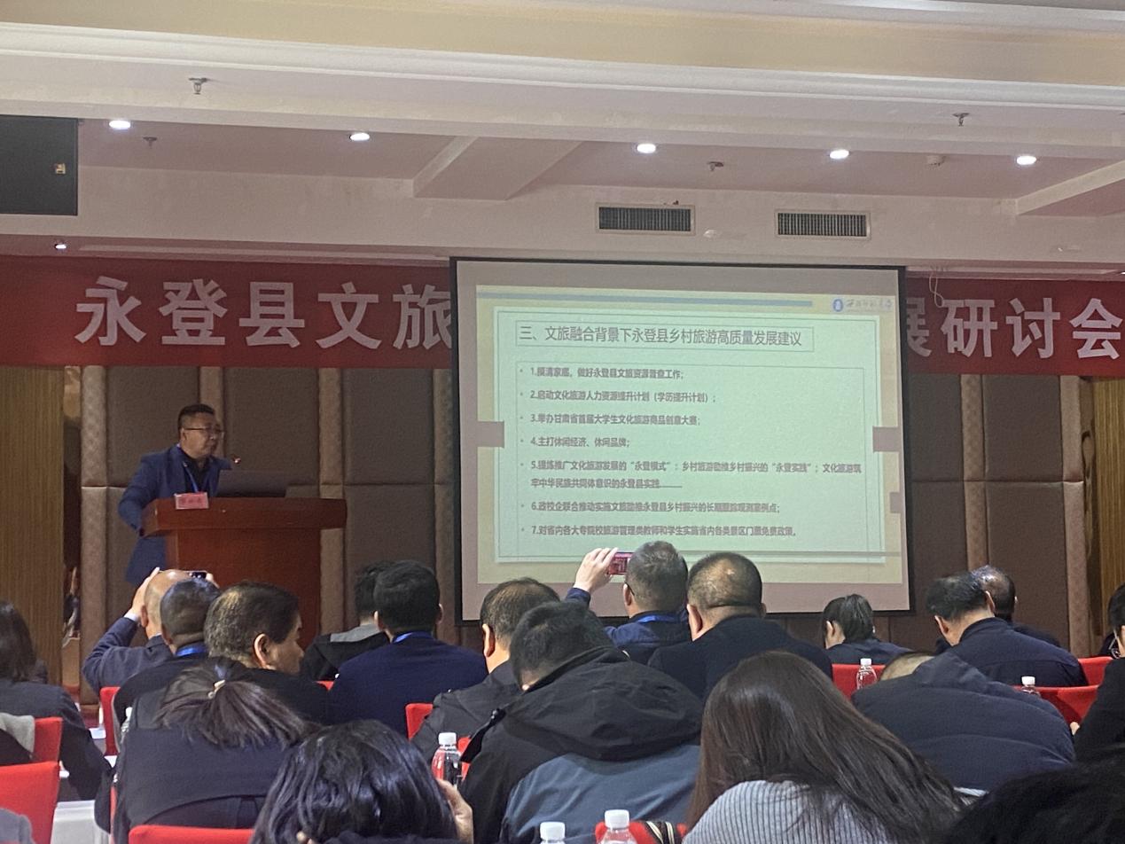 11月10日至11日,永登县文旅产业高质量发展研讨会在永登县召开。会议由中共永登县委、永登县人民政府、甘肃省文化产业与新型文化业态发展研究中心主办,永登县文体广电和旅游局、甘肃博琳国际文化发展有限公司承办,304am永利集团官网、甘肃省旅游发展研究院协办。本次会议以“永登县文旅产业高质量发展”为主题,来自永登县各机关单位与甘肃省各高校的相关专家学者共计120余人参加会议。学院院长梁旺兵、副院长武克军和部分老师参加了研讨会。