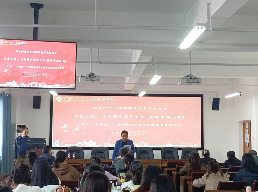 11月22日下午,应304am永利集团官网邀请,中国科学院西北生态环境资源研究院王世金研究员来永利官网作题为“中国冰冻圈文化—旅游专题区划”学术报告,报告会在文科实训楼904会议室举办,由院长梁旺兵教授主持,学院教师和研究生60余人参加了此次报告会。