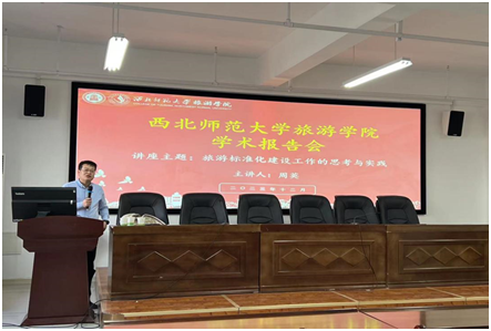 12月13日下午,应304am永利集团官网邀请,甘肃省标准化研究院院长周英来永利官网作题为“旅游标准化建设工作的思考与实践”学术报告,报告会在文科实训楼904会议室举办,由副院长柴亚林副教授主持,学院教师和研究生60余人参加了此次报告会。