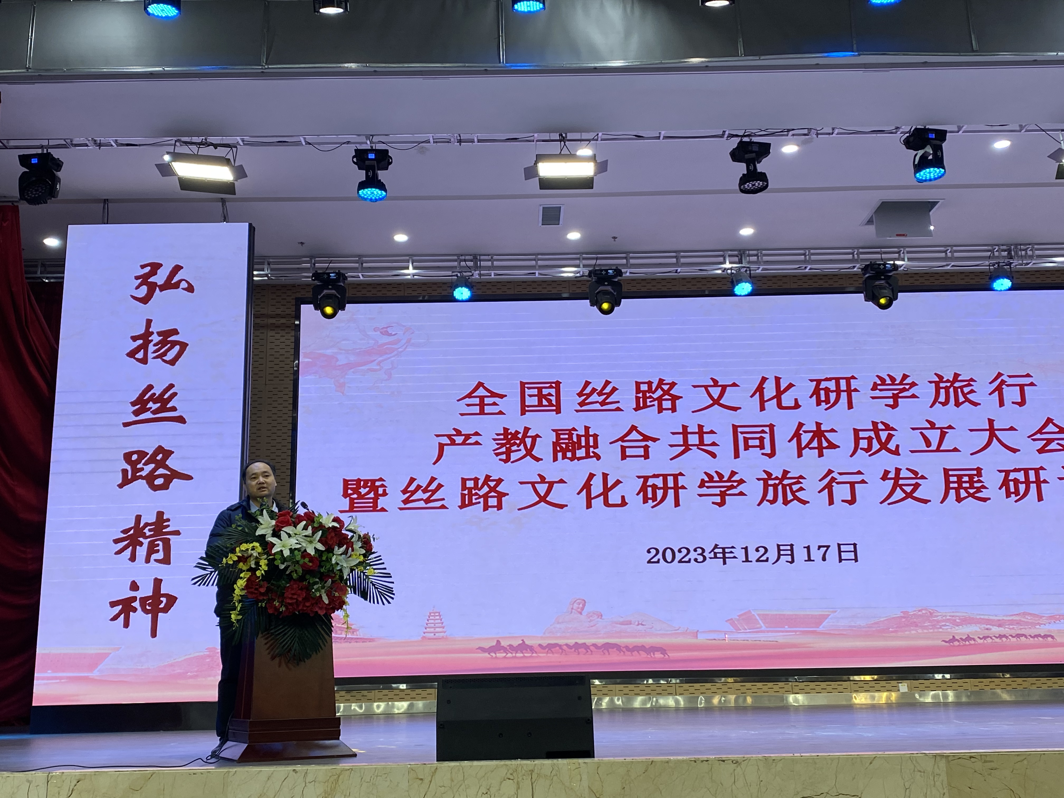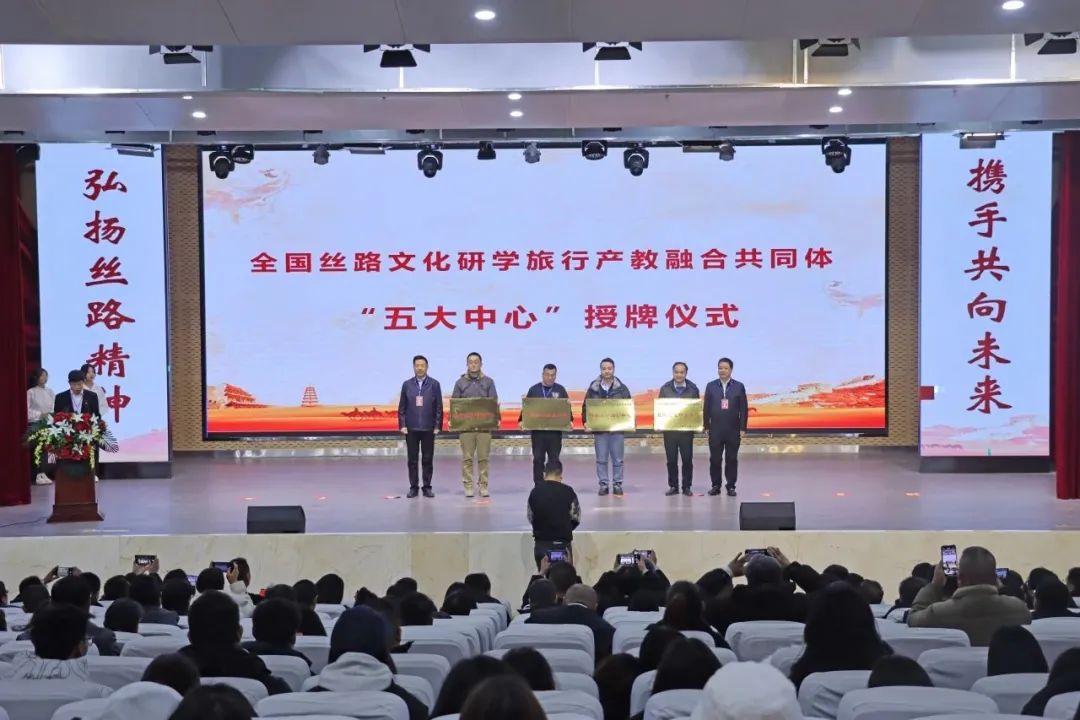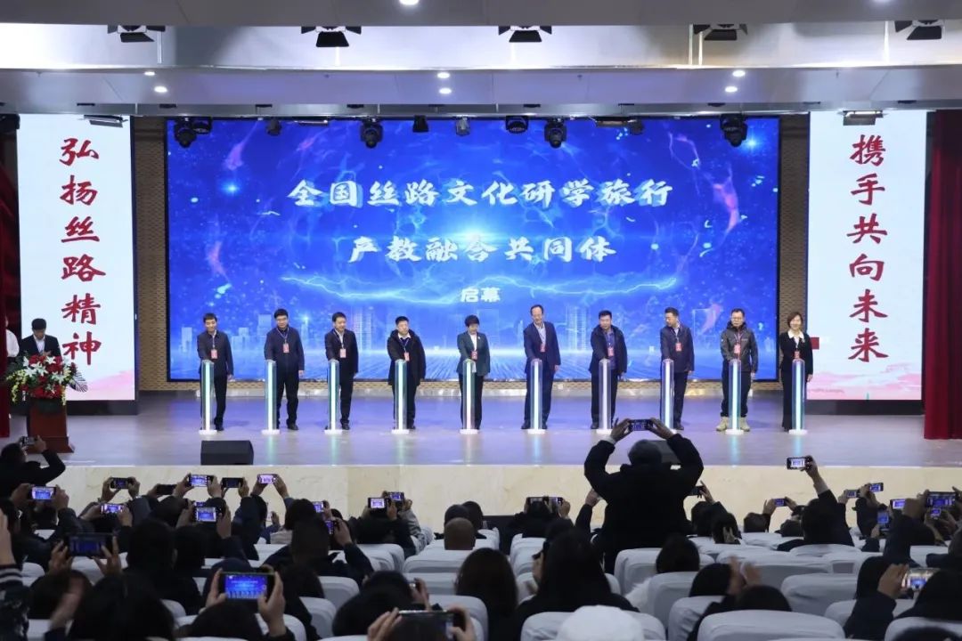 2023年12月17日,学校党委常委、纪委书记、监察专员马庆同志带领304am永利集团官网梁旺兵院长、王力副院长和武克军副院长一行参加了全国丝路文化研学旅行产教融合共同体成立大会。