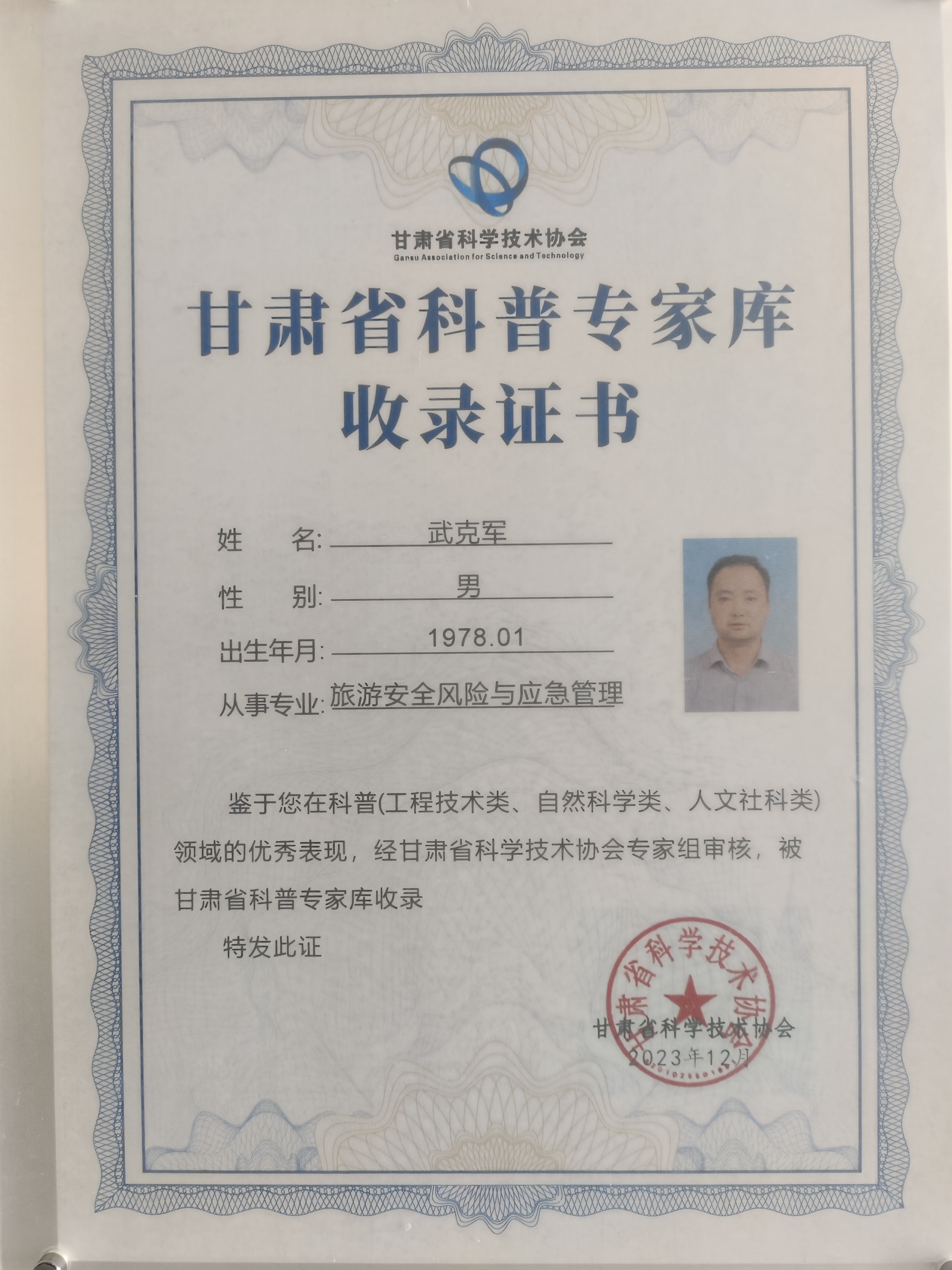 12月18日,“2023年甘肃省科普专家聘任仪式”在甘肃省科技馆举行,永利官网武克军副教授被甘肃省科学技术协会聘任为甘肃省旅游安全风险与应急管理科普专家。这是继21年被聘为世界遗产教育金城首席科普专家后,对永利官网旅游风险研究团队从事甘肃省科普工作的肯定。