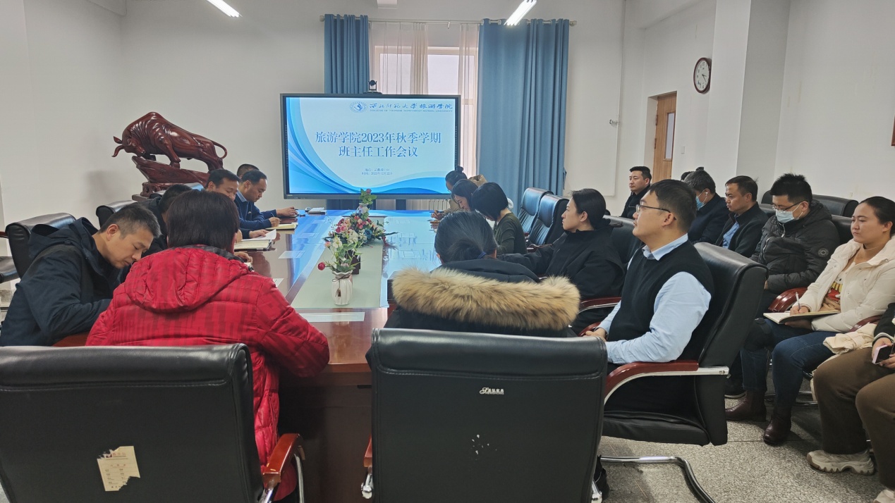 2023年12月22日下午,304am永利集团官网在文科实训楼1101会议室召开2023年秋季学期班主任工作会议。学院党委书记谢致远、院长梁旺兵、副院长武克军、党委委员万建斌和全体班主任参加此次会议,党委副书记戴小武主持会议。