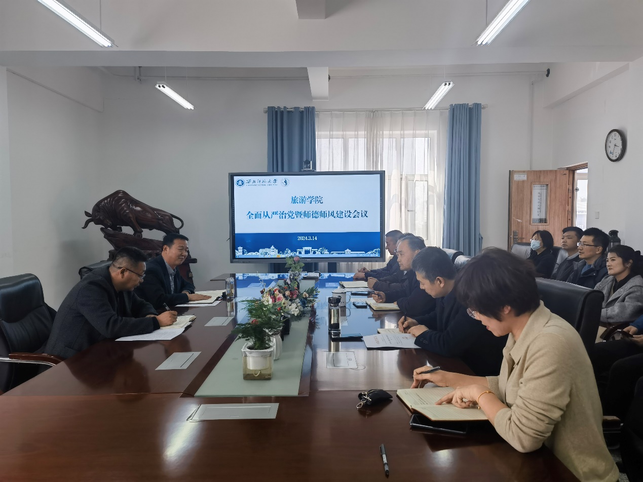 3月14日,304am永利集团官网在文科实训楼1101会议室召开全面从严治党暨师德师风建设会议,学院领导和全体教职工参加会议。会议由党委书记谢致远主持。