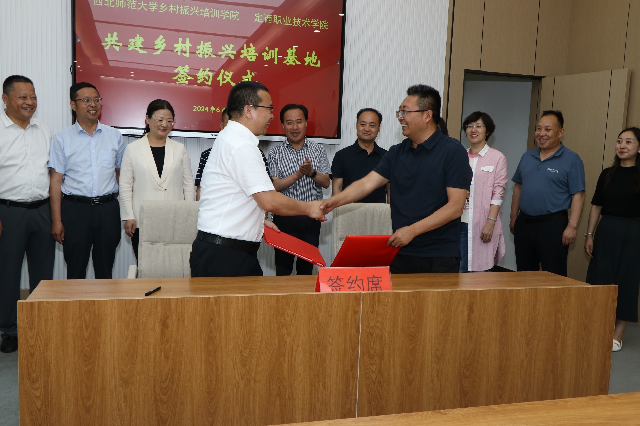 在座谈交流中,双方紧密围绕联合开展定西及周边地区乡村旅游助力乡村振兴、专业建设、乡村振兴培训基地建设等主题,就双方合作需求、合作模式及预期成效展开了深入交流和探讨,随后,双方共同签订了共建乡村振兴培训基地协议。