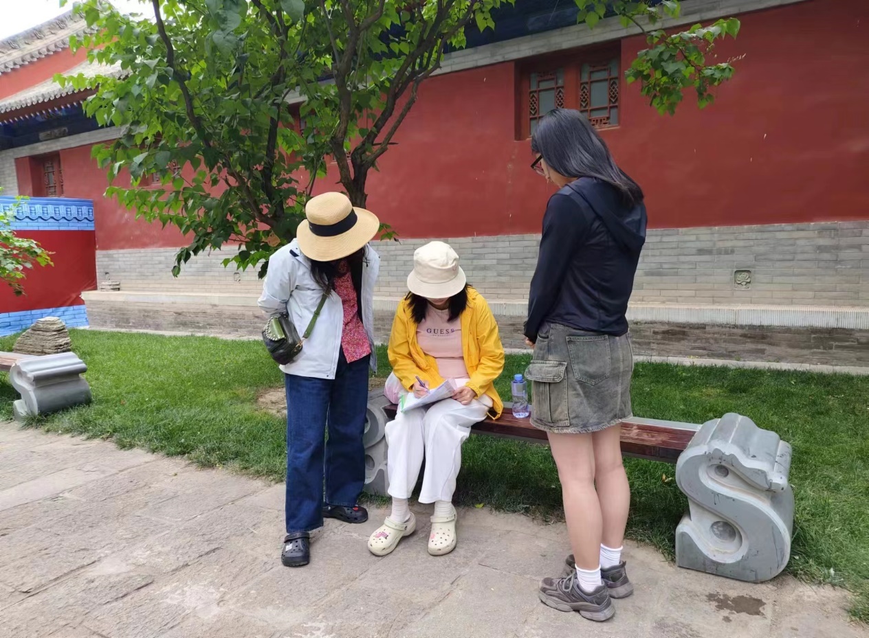 6月30日,师生们徒步来到天水伏羲庙景区。伏羲庙是中国古代祭祀伏羲氏的重要场所,也是研究伏羲文化和易学文化的重要基地。进入景区后对伏羲庙的建筑风格、雕刻艺术、文物陈列等有了直观的认识。此外,师生们还参观了伏羲庙周边的文化街区,感受了天水古城的独特魅力。在实地考察中,学生们积极开展调查问卷,与各地游客交流互动,为之后《社会调查原理与方法》调查报告的撰写做准备。